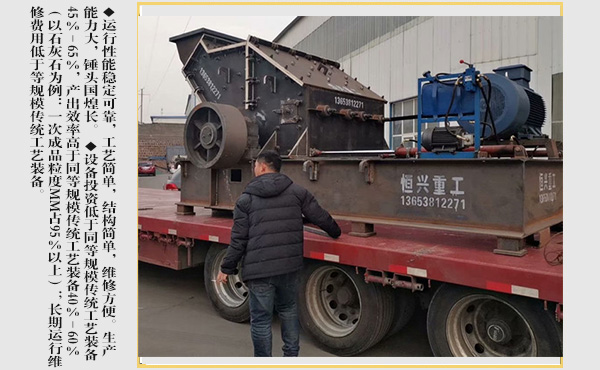 河卵石制沙機(jī)設(shè)備投資低于同等規(guī)模傳統(tǒng)工藝裝備35%-50%,產(chǎn)出效率高于同等規(guī)模傳統(tǒng)工藝裝備35%-50%,以石灰石為例:一次成品粒度≤5mm占85%以上。運(yùn)行維修費(fèi)用低于同等規(guī)模傳統(tǒng)工藝裝備35%-50%,廣泛應(yīng)用于機(jī)制沙石料、水泥、耐材、冶金、化工等行業(yè)。