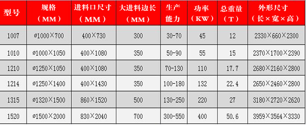 【生產(chǎn)能力】進料粒度:1200mm 20~500噸/小時;